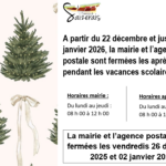 La mairie est fermée les après-midis pendant les vacances scolaires, sauf le vendredi.